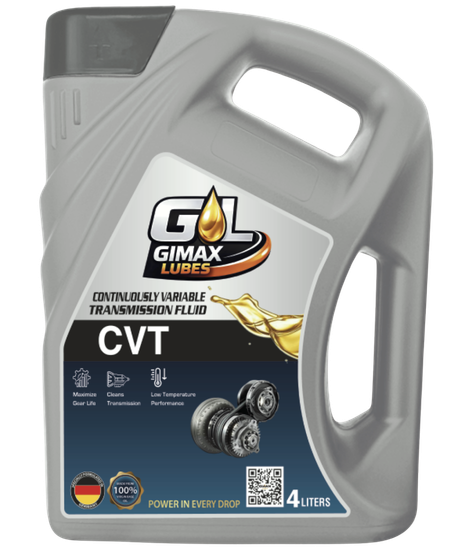 Gimax lubes CVT Fluid is a premium quality synthetic based oil designed for today's technologically advanced continuously variable transmissions. It is formulated with synthetic premium base oils, long-life friction modifiers, unique anti-wear additives and shear stable viscosity modifiers for use in passenger cars with belt-driven continuously variable transmissions. It has been specifically engineered to have the unique frictional properties required for use in this type transmission.